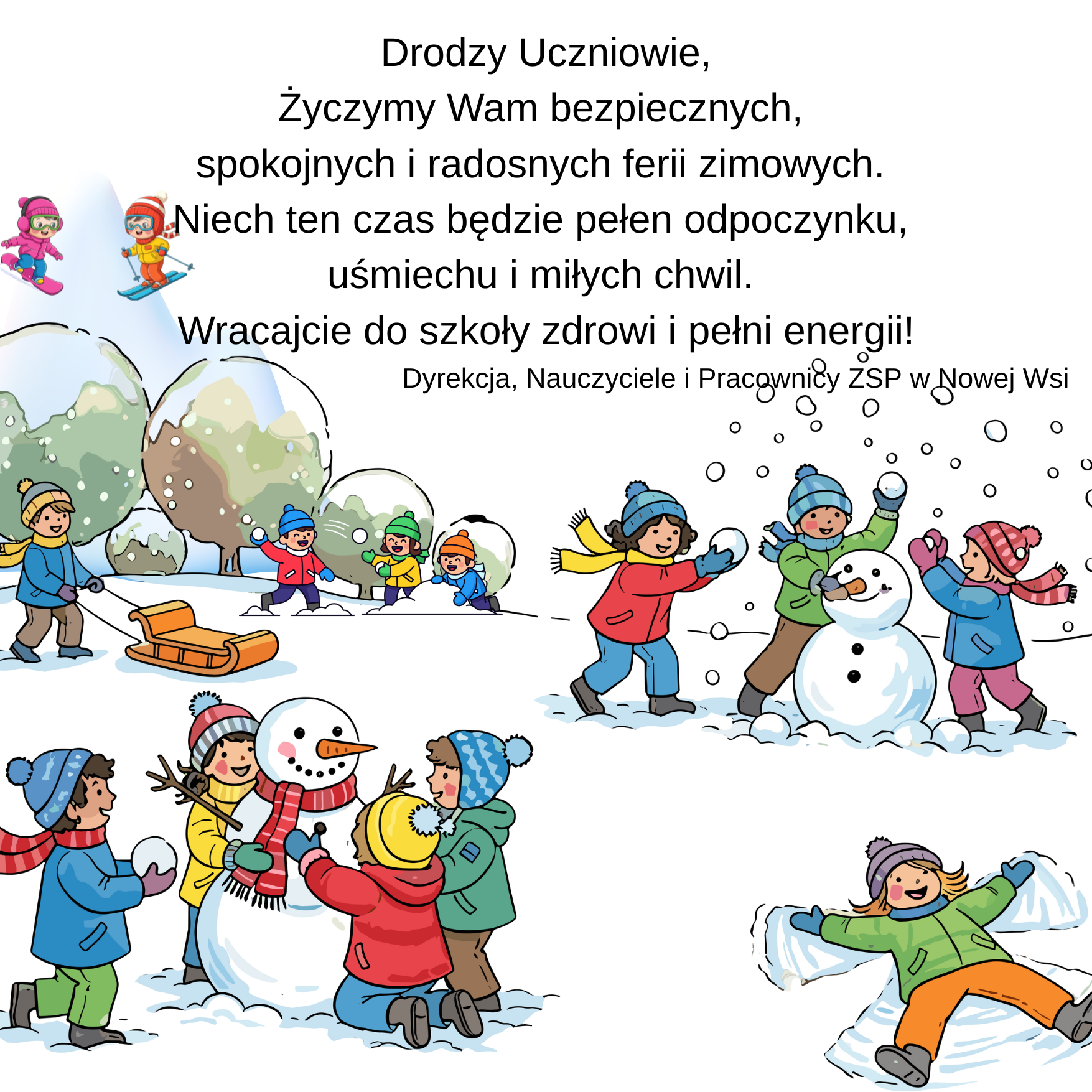 Życzymy Wam bezpiecznych, spokojnych i radosnych ferii zimowych. Niech ten czas będzie pełen odpoczynku, uśmiechu i miłych chwil.