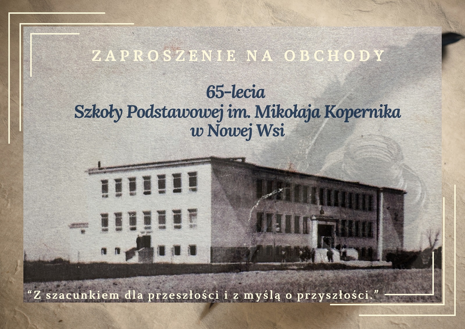 Dyrektor, Rada Pedagogiczna, Rada Rodziców i Uczniowie ZSP w Nowej Wsi serdecznie zapraszają na uroczystość obchodów 65-lecia Szkoły Podstawowej w Nowej Wsi w dniu 17 kwietnia 2026 r. o godz. 15:00 (hala sportowa).